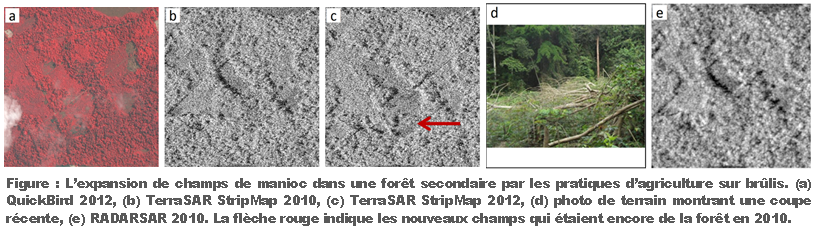 The main objective of this analysis is to assess the potential and limitations of radar data in detecting forest degradation. The first, tedious, step was the preprocessing of all images acquired. The principal component analysis is a visual comparison of radar images with evidence of degradation based on very high resolution images and field data. An example of such a comparison is shown in figure below.