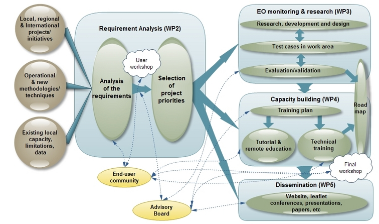 The second Work Package foresees to collect information to realize a requirement analysis of existing needs in the project’s frame. On one hand, local, regional and international projects and initiatives will be listed together with existing operational methodologies and techniques. On the other hand, existing local data and gaps in capacities will be analyzed.